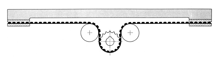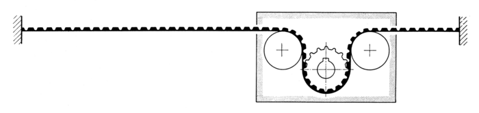 Due to the high pitch accuracy between belt and pulley meshing the load distribution is distributed equally to the tooth faces in mesh on the drive assembly pulley and that produces a high performance and accuracy. The choice of materials for the belt and pulley is especially suitable for bi-directional drives. The distance of travel per pulley revolution is defined with the selection of the pitch and the number of teeth of the drive assembly pulley. For the linear drives are three design versions available.