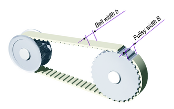 The belt width b is assigned a pulley width B each which guarantees sufficient lateral play. The "width clearance" is not especially dimensioned.