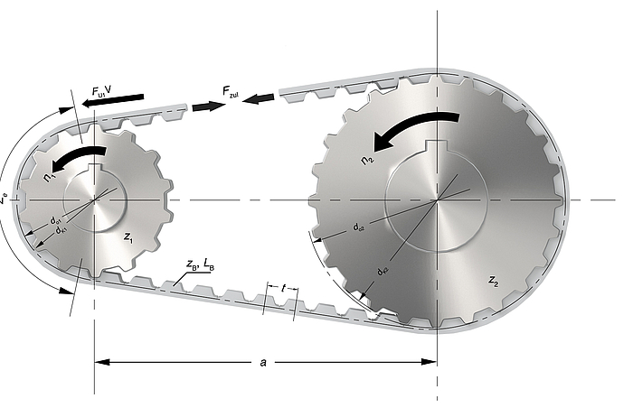 | spezifische Zahnkraft | FUspez | [N/cm] | Riemenlänge | LB | [mm] | |