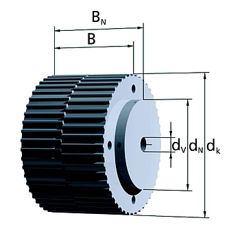 Der Artikel wird auf den nachfolgenden Seiten weiter spezifiziert. Zum Beispiel erfolgt dort die Auswahl der Scheiben- bzw. der Riemenbreite. Klicken Sie dazu auf den Anfragekorb oder auf den CAD-Button.